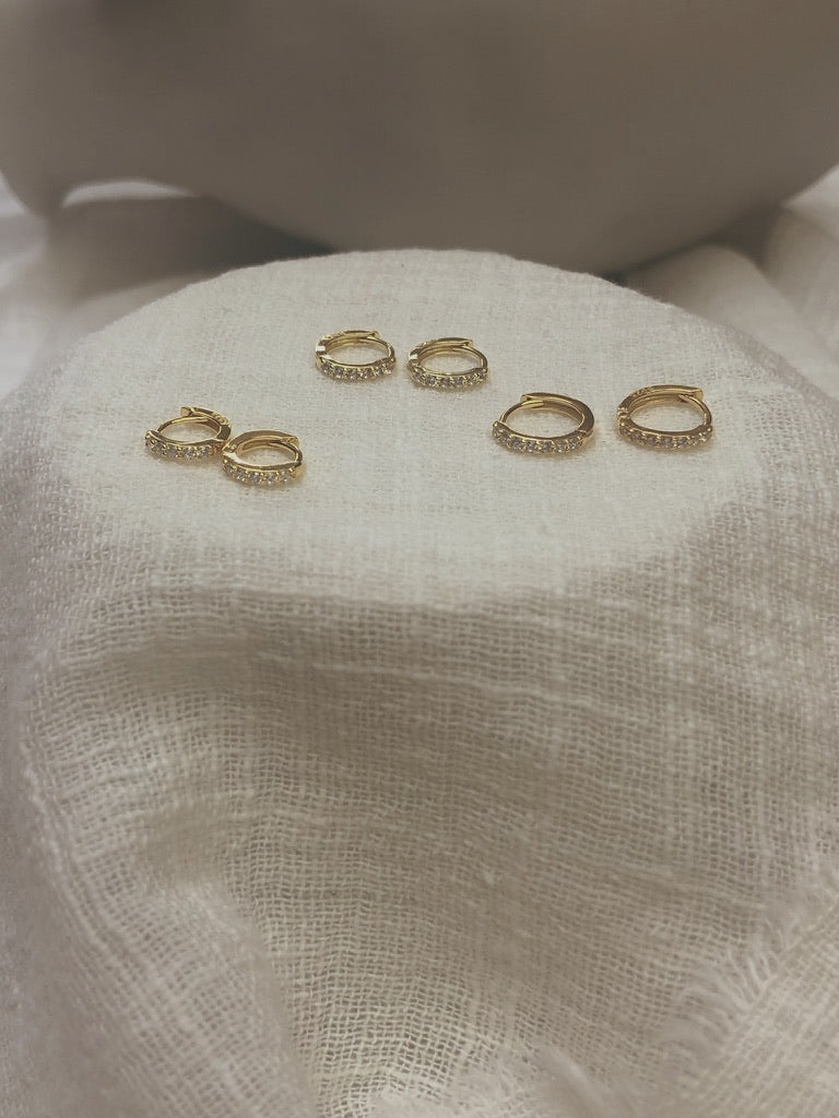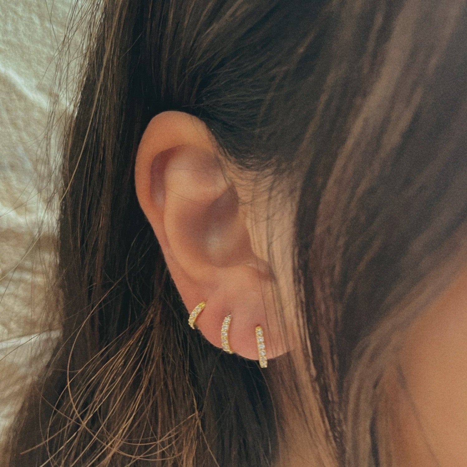 Say goodbye to lackluster earrings! Get ready to make a statement with The Iris Huggies! Our stack of earrings is the perfect curated ear, with diamond details that can take you from day-to-night. Crafted from sterling silver and available in gold or silver, they're the perfect accessory for any outfit, and will stay tarnish-free no matter where your day takes you. Get ready to turn heads with The Iris Huggies!