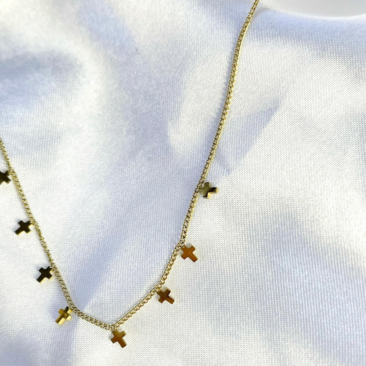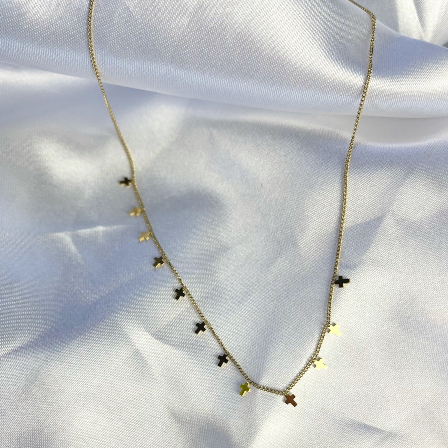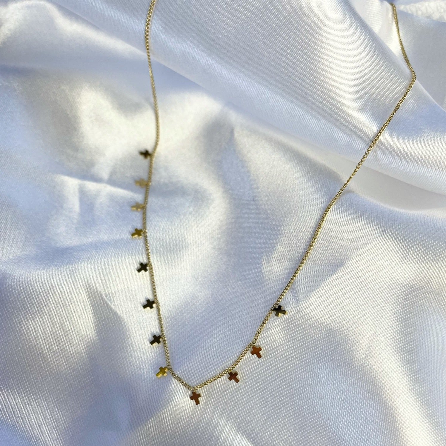 Introducing The Brea Choker, the only accessory you need to give your outfit a perfect final touch. With small gold cross pendants on a sleek choker, you'll be styling and profiling in no time! Deck out your look with this must-have piece and exude the golden goddess vibes.