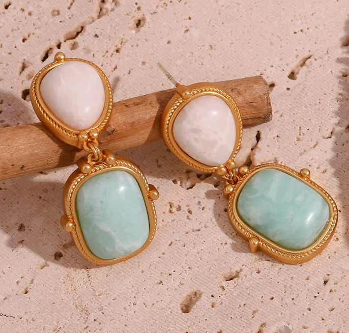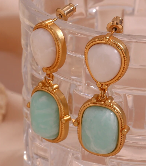 Enhance your daily style with The Calle Earring. Crafted from tarnish-free stainless steel and adorned with natural white jade gemstones, these drop earrings add a touch of elegance to any outfit. The waterproof design ensures long-lasting wear, while the gold accents add a luxurious touch. Elevate your accessories game with The Calle Earring.