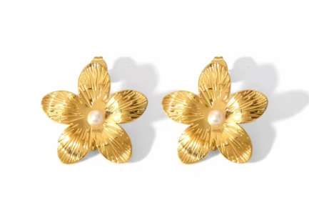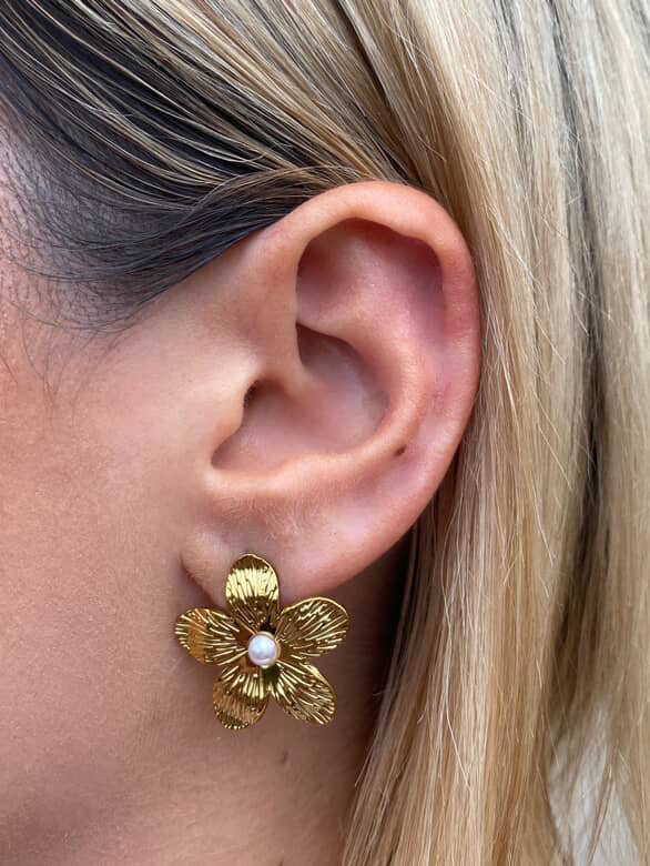 Bold yet breezy, the Coral Earrings are a golden ode to island blooms and sun-drenched days. These textured flower studs feature a radiant petal design with a pearl-like centre — giving statement energy with coastal elegance.