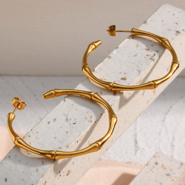 The Dina Hoop is here to add a little fun to your fashion! This bamboo-inspired medium-sized hoop is made of gold stainless steel, so it'll stay chic and never tarnish. Be effortless AND stylish—it's a win-win!