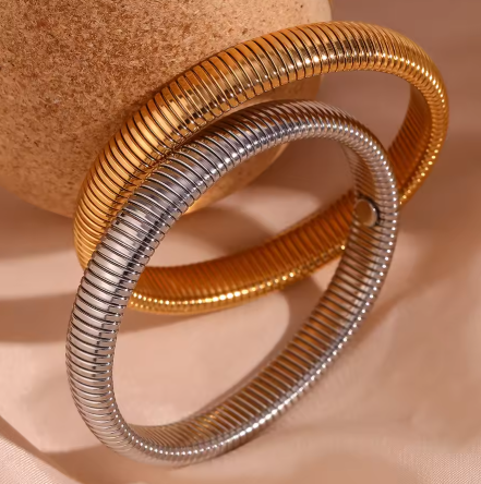 Klara – Sleek, sculptural, and made for stacking. Whether in warm gold, cool silver, or both, she’s the effortless finishing touch your wrist has been waiting for. Part of the Spring Collection.
