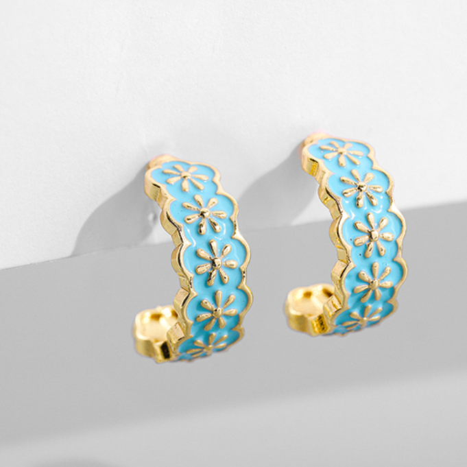 Be the envy of all your friends with The Kya Hoop. Featuring turquoise tones and a vibrant flower pattern, it will lend a European flair to any outfit! It's the perfect way to add a pop of colour while still looking effortless. Yup, you've got style on lock!
