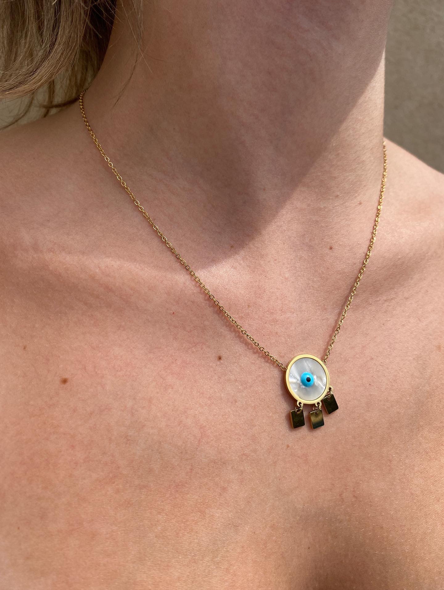 Add a unique touch to your look with The Margot Necklace - a gorgeous piece of jewellery with a European vibe, perfect for exuding summer vibes! Featuring a beautiful gold-plated evil eye, it offers a subtle statement that'll have all eyes on you!