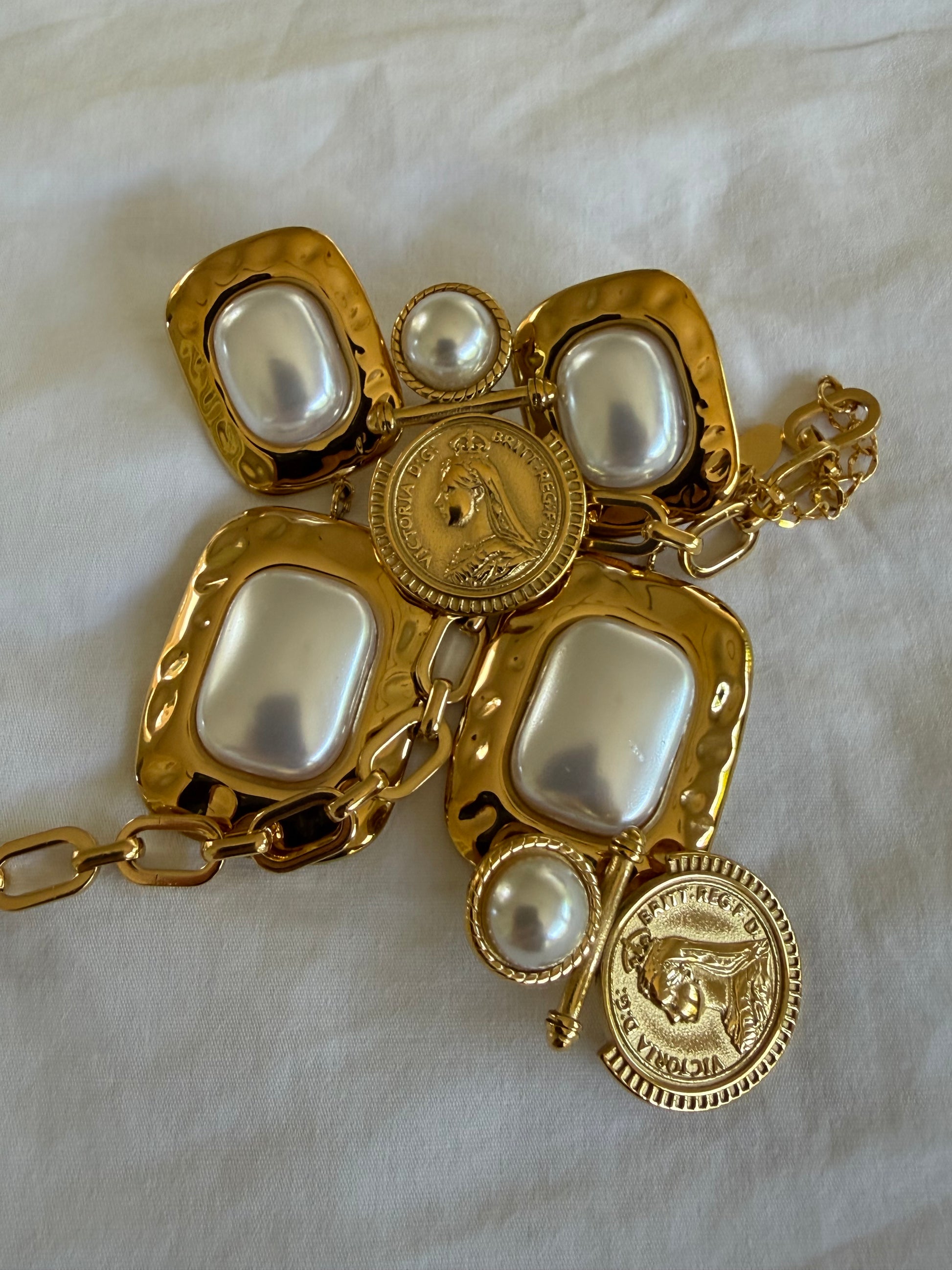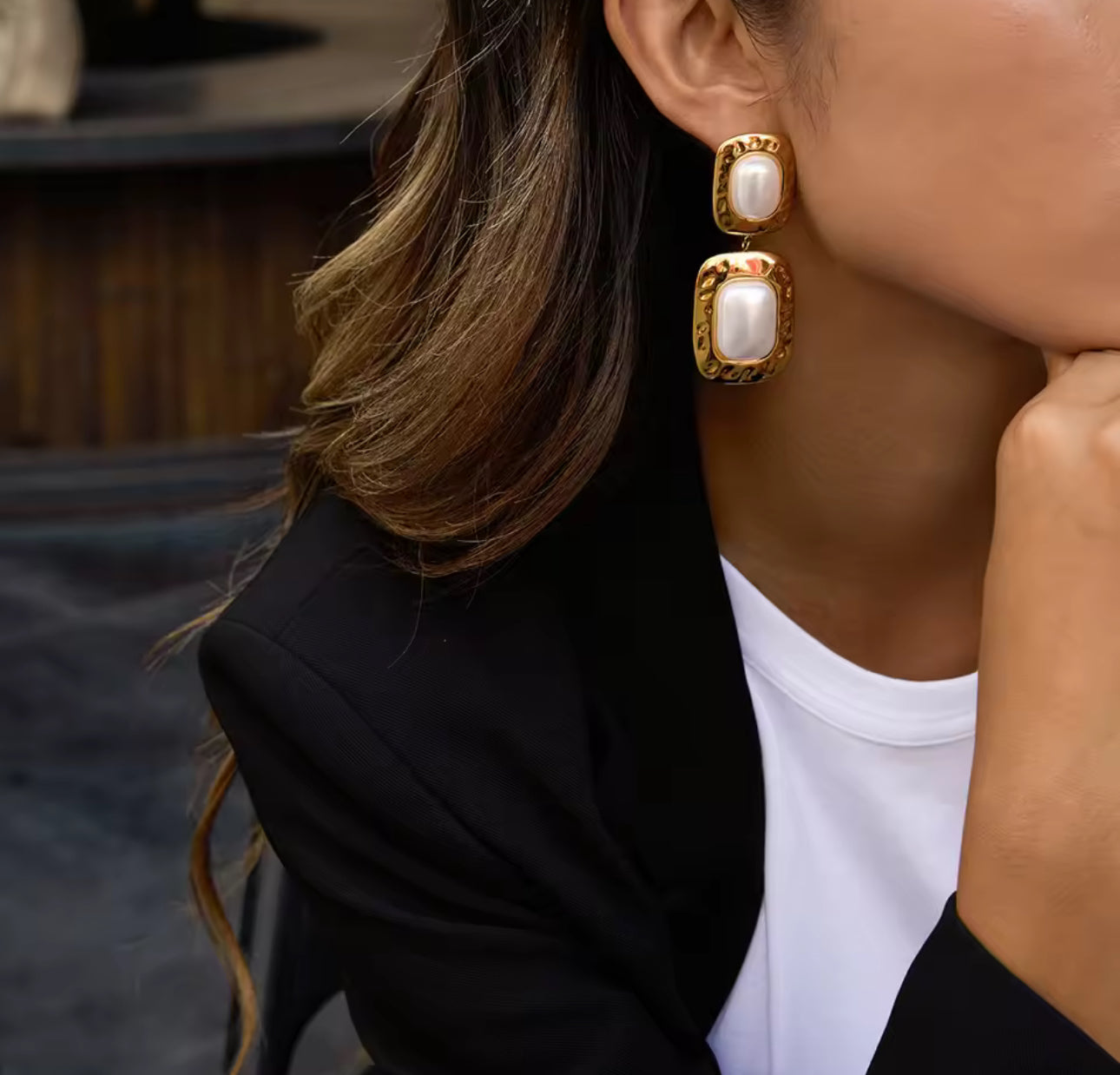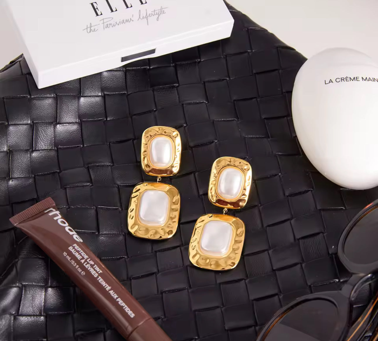 Marigold is a warm, statement-making classic with a soft, vintage feel. Featuring a rectangular pearl framed by textured gold, these earrings bring structure, glow and just the right amount of polish to any look.
