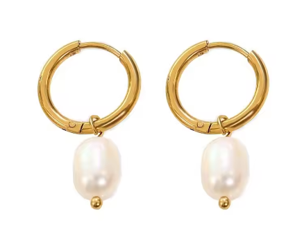 – Gold-toned hoops with faux pearl drop
