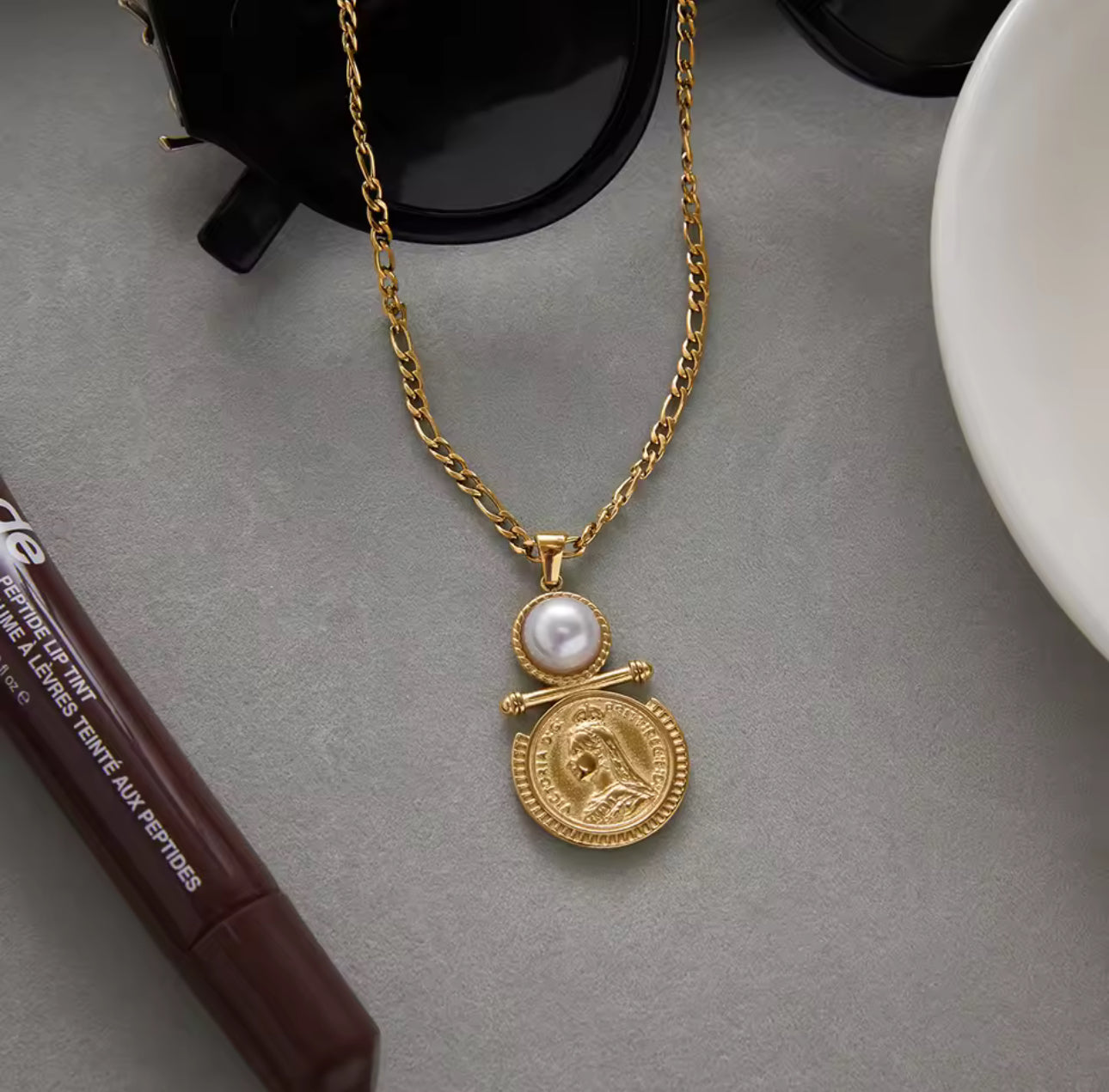 The Pearl Drop is a timeless classic with a modern edge. Featuring a soft pearl detail paired with a vintage-inspired coin pendant, this necklace is designed to sit effortlessly at the collarbone and elevate any look.