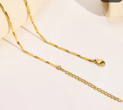 Shine with effortless elegance in the Solara Necklace. Featuring elongated, twisted gold links joined by delicate spheres, this piece blends modern minimalism with timeless sophistication. Its sleek design makes it perfect for layering with other chains or wearing as a subtle statement on its own. Whether styled for everyday wear or a special occasion, Solara brings a radiant touch to any look.